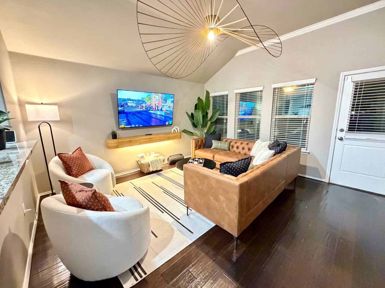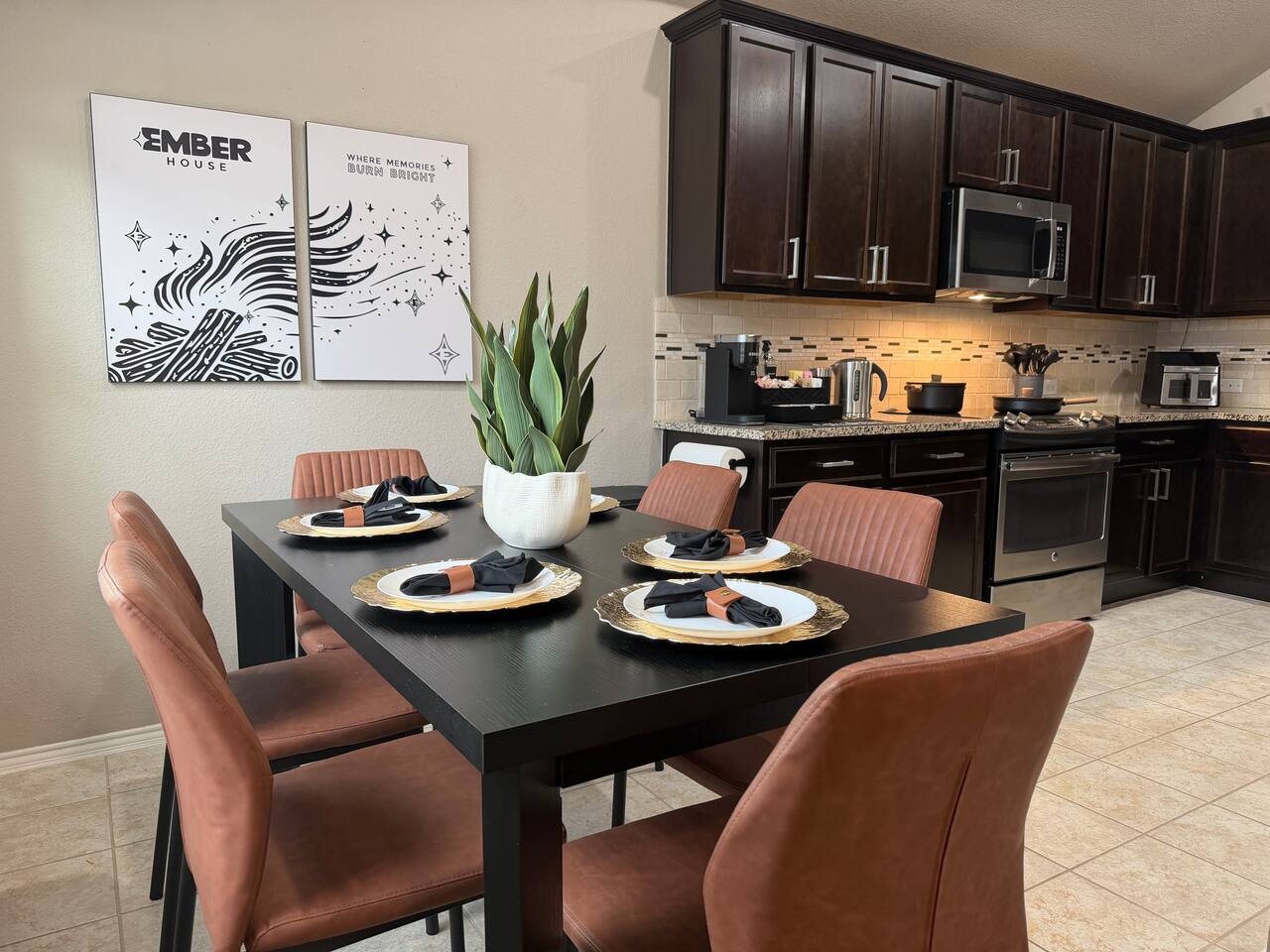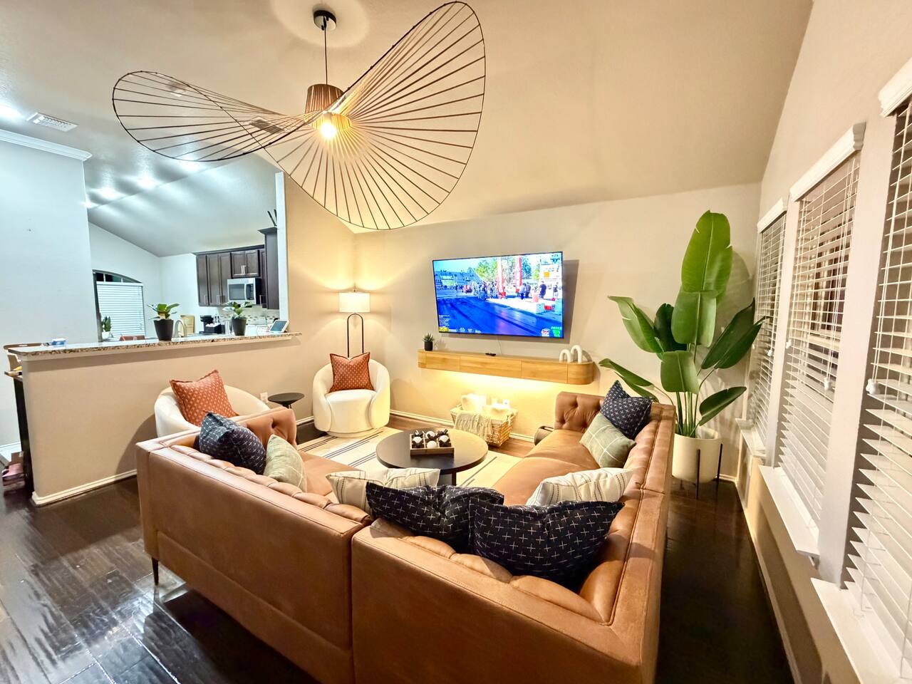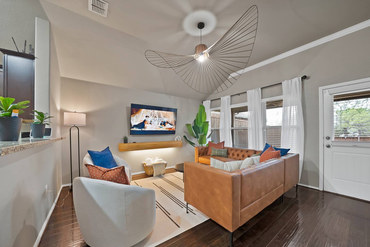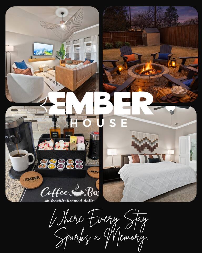 Relax in this modern, wedding-ready retreat minutes from top wedding venues (The Hillside Estate, Brighton Abbey, Knotting Hill Place), trails, Little Elm Park and Lewisville Lake access. Enjoy a designer interior, fast WiFi, smart TVs, a cozy fire pit for cool evenings, and plenty of parking—perfect for groups gathering for events or weekend getaways. 🏜 HIGHLIGHTS ✓ Modern designer interiors ✓ Minutes from wedding venues, trails & lake access ✓ Fire pit, smart TVs & fast WiFi