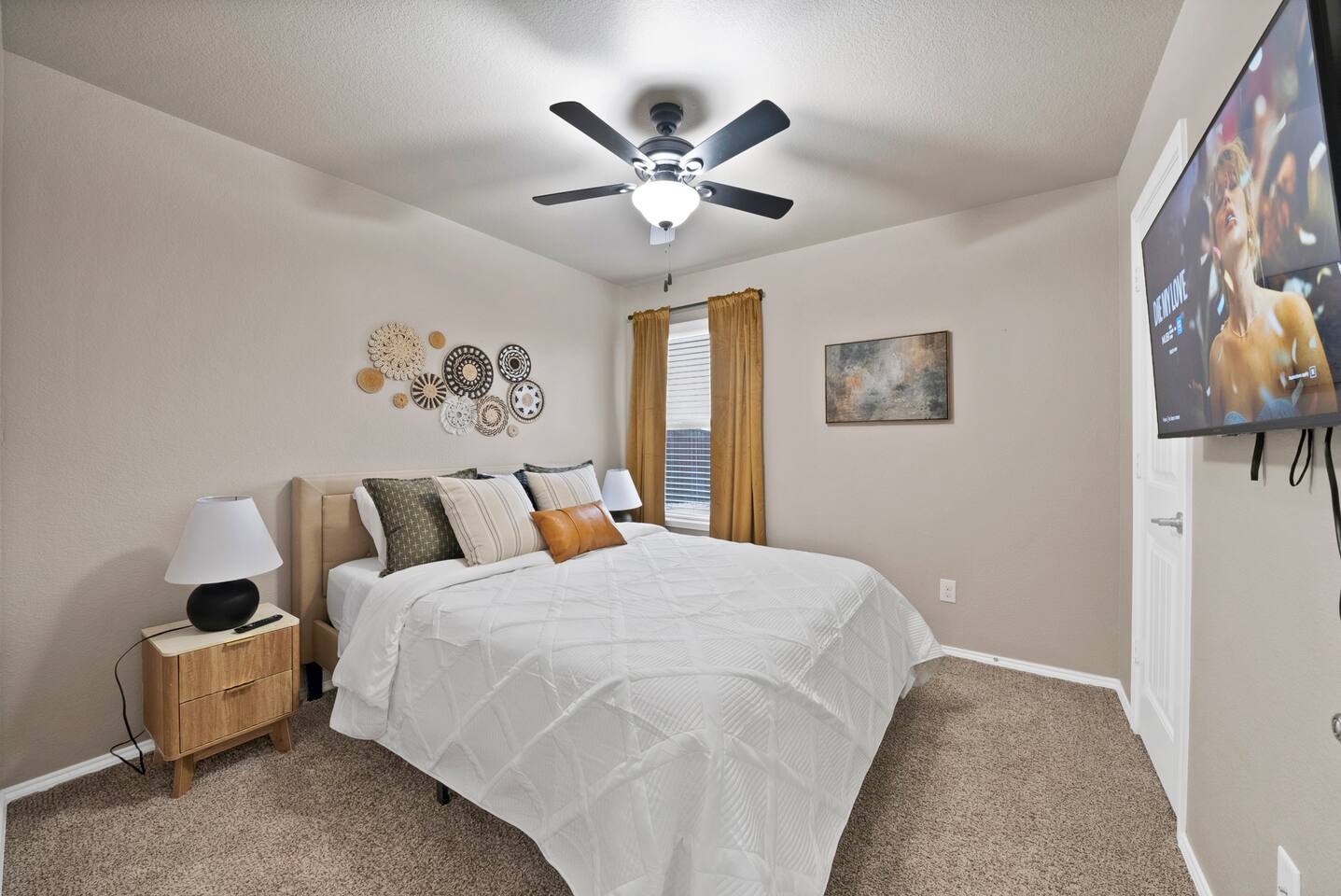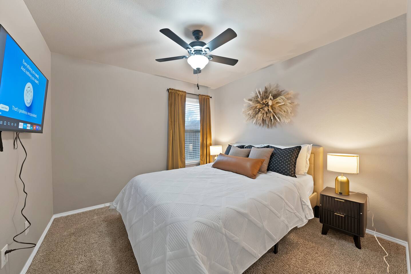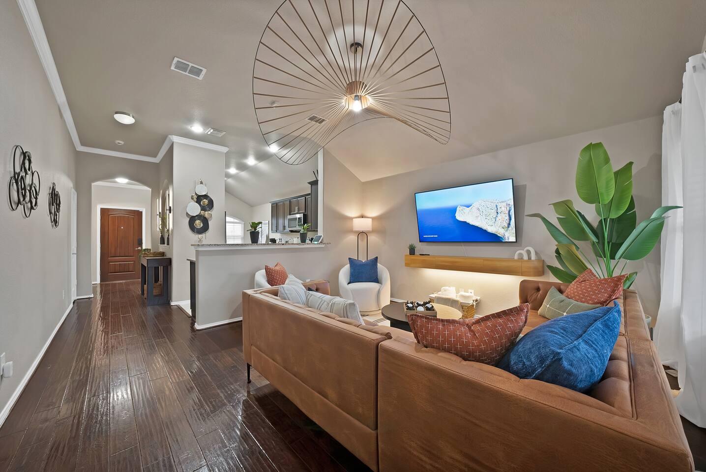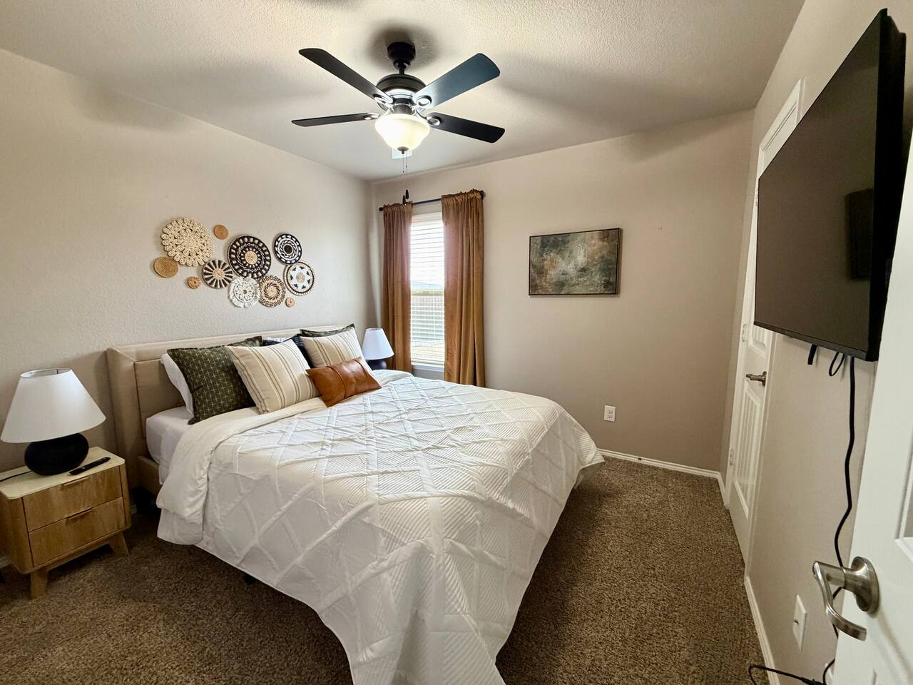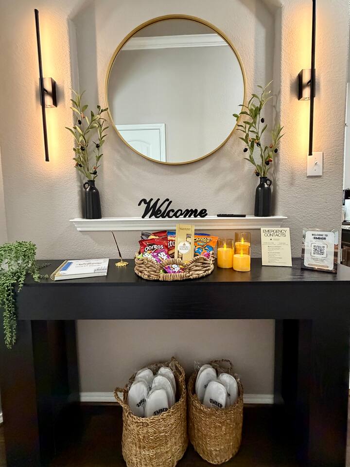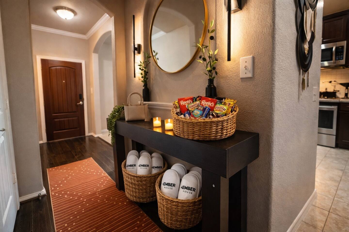 Relax in this modern, wedding-ready retreat minutes from top wedding venues (The Hillside Estate, Brighton Abbey, Knotting Hill Place), trails, Little Elm Park and Lewisville Lake access. Enjoy a designer interior, fast WiFi, smart TVs, a cozy fire pit for cool evenings, and plenty of parking—perfect for groups gathering for events or weekend getaways. 🏜 HIGHLIGHTS ✓ Modern designer interiors ✓ Minutes from wedding venues, trails & lake access ✓ Fire pit, smart TVs & fast WiFi