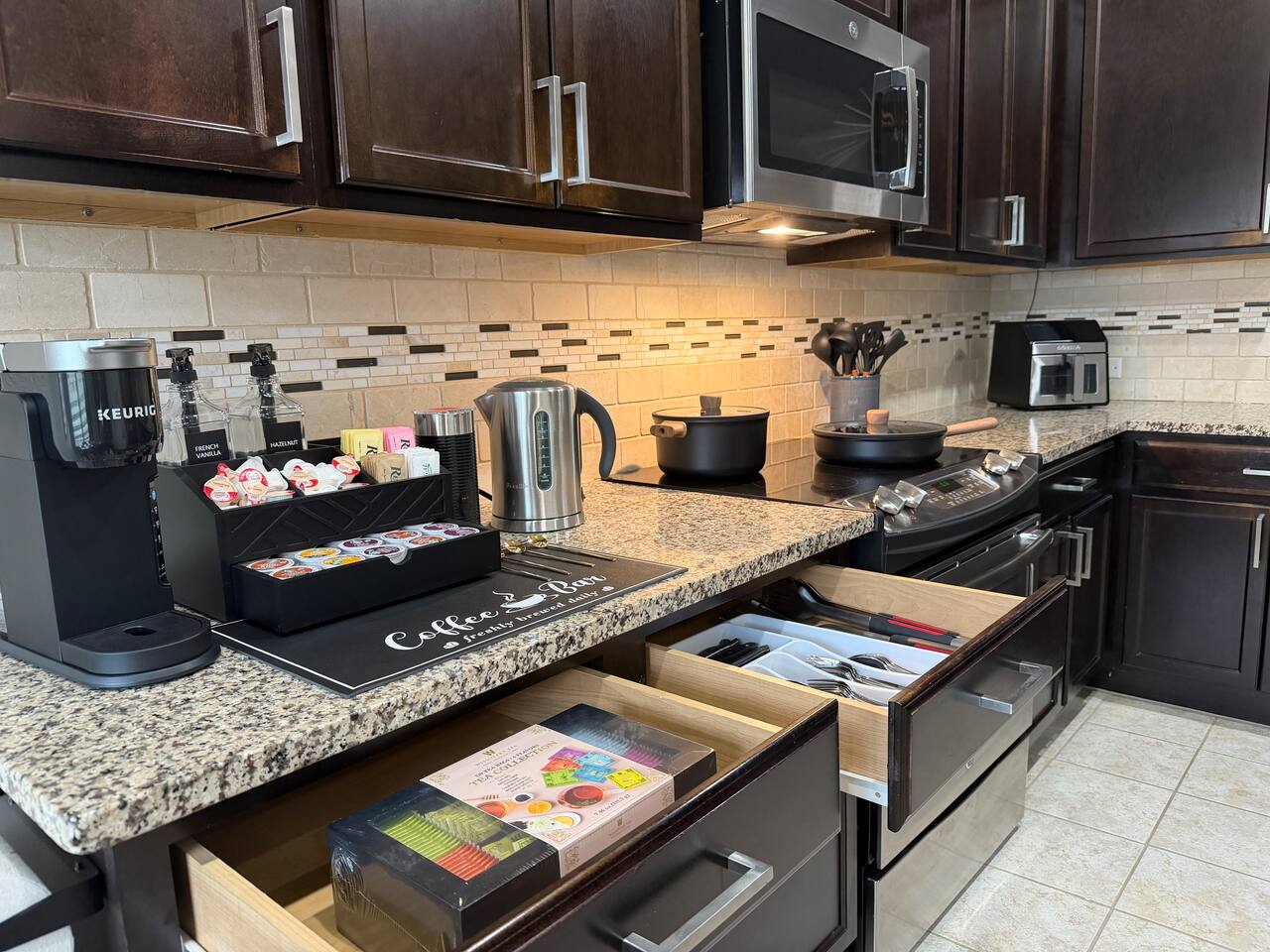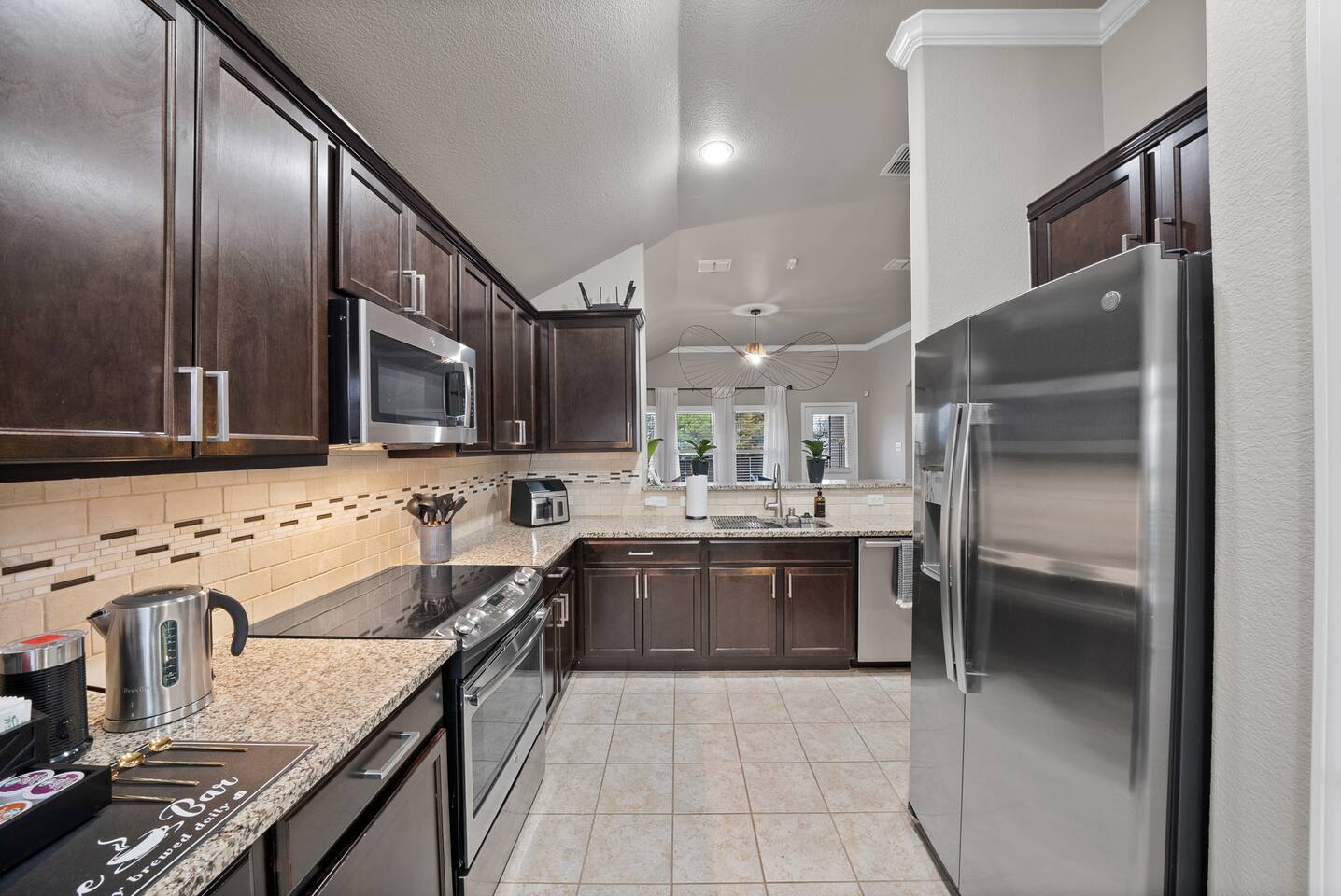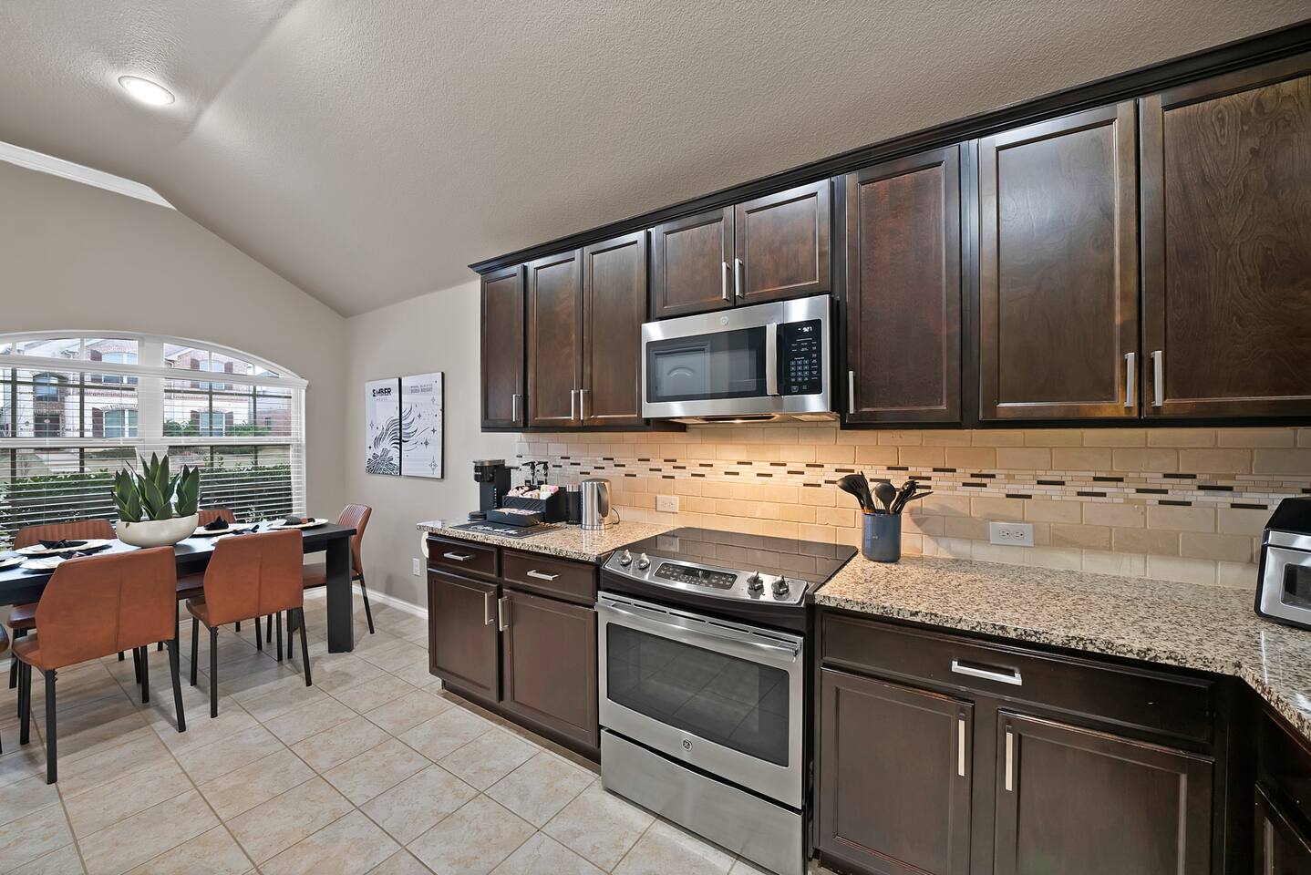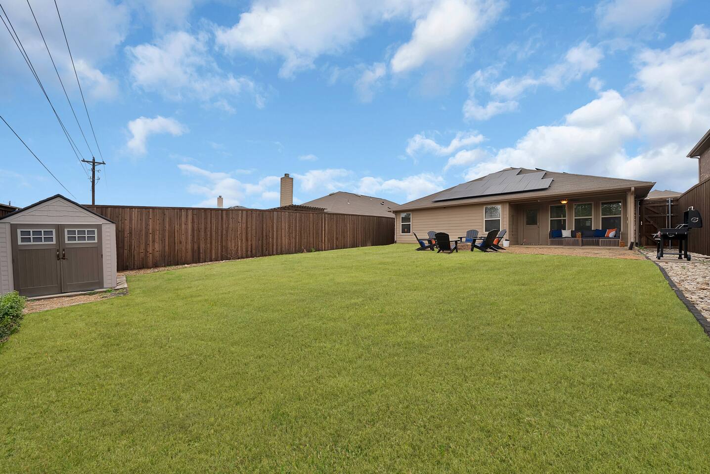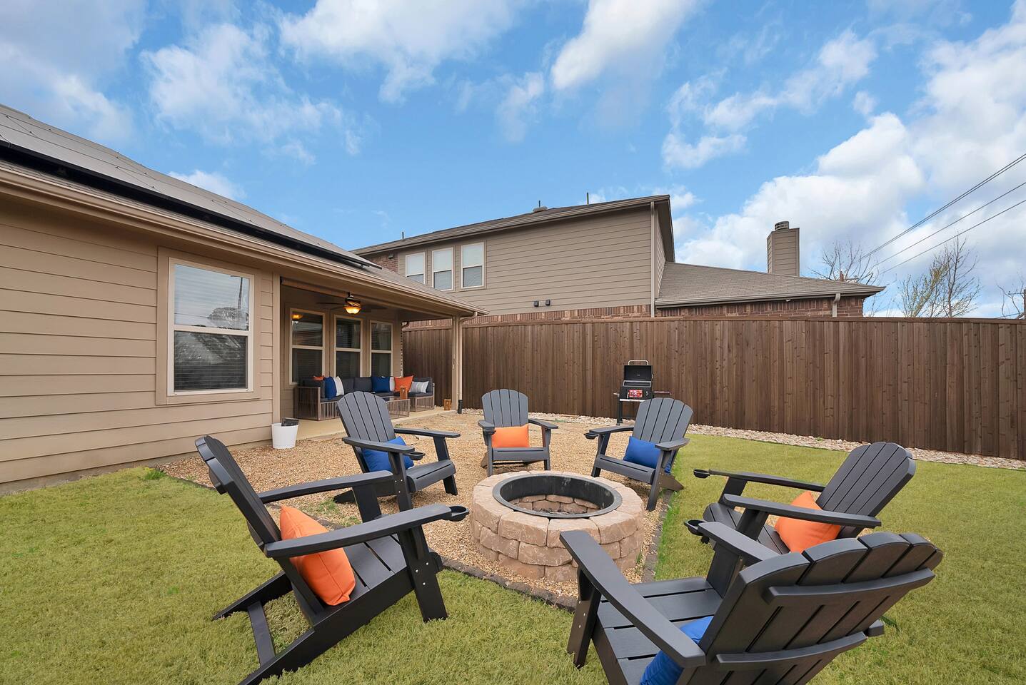 A beautifully designed space offering seamless comfort with smart TVs, high-speed WiFi, a stocked kitchen, and inviting fire-pit nights. 🏷 Main Floor Kitchen & Dining Room ∙ FULLY stocked kitchen w/plenty of counterspace for at-home baking and cooking ∙ Elegant KEUREG, coffee maker, tea kettle, blender and toaster ∙ Cooking oils and seasoning essentials ∙ Abundance of dishware, glassware and silverware, including children’s ∙ Full-sized fridge and freezer ∙ Glass cooktop and oven ∙ Microwave ∙ Airfryer ∙ Dishwasher ∙ Trash compactor ∙ Rice maker ∙ Dining room table, seating for 6 ∙ Breakfasat counter, 3 high chairs ∙ Large countertop space for food preparation Living Room ∙ Smart TV ∙ Netflix, Prime Video, Disney Plus, Hulu, HBO and more ∙ Sound system ∙ Comfortable sofa ∙ Ceiling fan ∙ Room darkening shades ∙ Books ∙ Board games Bedroom #1 ∙ King size bed ∙ Premium mattress and comforter ∙ Smart TV ∙ Room darkening shades ∙ Bedside table and lamp ∙ Large closet w/ hangers ∙ Luggage rack ∙ Ceiling fan ∙ Iron and iron stand ∙ Bedroom bench Bedroom #2 ∙ Queen size bed ∙ Premium mattress and comforter ∙ Smart TV ∙ Room darkening shades ∙ Bedside table and lamp ∙ Large closet w/ hangers ∙ Ceiling fan ∙ Iron and iron stand Bedroom #3 ∙ Queen size bed ∙ Premium mattress and comforter ∙ Smart TV ∙ Room darkening shades ∙ Bedside table and lamp ∙ Large closet w/ hangers ∙ Ceiling fan ∙ Iron and iron stand Bathroom #1 ∙ Shower ∙ Bathtub ∙ Dual vanity with oversized mirror and plenty of counterspace ∙ Shampoo, conditioner and body soap ∙ Makeup washcloth Bathroom #2 ∙ Shower ∙ Bathtub ∙ Dual vanity with oversized mirror and plenty of counterspace ∙ Shampoo, conditioner and body soap ∙ Makeup washcloth Laundry Room ∙ GE high-efficiency washer/dryer ∙ Tide Free and Gentle ∙ Drying rack 🏷 Outdoor Space(s) Backyard ∙ Barbeque grill ∙ Fire pit ∙ Outdoor furniture ∙ Dining table with umbrella, seating for 4 🚘 Nearby ∙ Upper Park Cafe (~4 min): Charming local cafe — great for breakfast, light lunches & coffee. ∙ Giulias Cafe (~5 min): Popular brunch spot with classic comfort food. ∙ Jay's Fries N Cones (~5 min): Highly rated casual eatery for burgers, fries & cones. ∙ Green valley kitchen (~6 min): Cozy local restaurant for breakfast/lunch. ∙ Cracked & Crepe Breakfast & Lunch (~8 min): Local favorite for brunch, crepes & coffee. ∙ Upper Park Coffee Co (~8 min): Coffee shop with free Wi-Fi & outdoor seating. ∙ Boundaries Coffee (~12 min): Highly rated Little Elm coffee favorite. ∙ Black Sheep Coffee (~12 min): Craft coffee & unique specialty drinks. ∙ Clear Creek Natural Heritage Center (~12–15 min): Nature preserve with 10+ miles of scenic hiking trails — great for outdoor exploration and wildlife viewing. ∙ Sharkarosa Wildlife Ranch (~10–15 min): Family-friendly wildlife ranch with exotic animals and interactive experiences. ∙ Downtown Aubrey Square (~5–7 min): Walkable local shops and eateries in a small-town atmosphere. ∙ Hopper Ranch Arena (~7–9 min): Community rodeo & event arena with weekend competitions. ∙ Pilot Point Coffee House (~15–18 min): Highly rated coffee shop in Pilot Point. ∙ Corner Cafe (~18–20 min): Classic diner cafe with hearty breakfasts. ∙ Historic Downtown Pilot Point (~18–22 min): Small downtown with boutique shops, local restaurants & cafes. ∙ The Lagoon at Windsong Ranch (~20–25 min): Family waterpark-style beach with paddleboards and slides — perfect summer outing. ∙ Oak Street Draft House (Denton) (~25–30 min): Classic craft beer and gastropub option with elevated bar food. ∙ Denton Square & Historic Downtown (~25–30 min): Bustling historic downtown with shopping, dining, and live entertainment. ∙ Ray Roberts Lake State Park (~30–35 min): Large lakeside park with picnicking, trails, water sports & camping. ∙ Cinemark Denton 14 Movie Theater (~25–30 min): Modern movie theater for late-night entertainment.